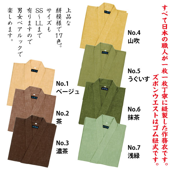 ■色■ ベージュ・茶・濃茶・山吹・うぐいす・抹茶・浅緑・水色・明紺・濃紺・グレー・黒・ピンク・濃あずき・エンジ・オレンジ・古代紫の17色 ■サイズ■ SS・S・M・L・LLの中からお選び下さい。